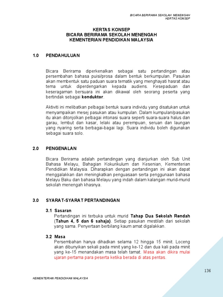 BICARA BERIRAMA SEKOLAH RENDAH KERTAS KONSEP KEMENTERIAN PELAJARAN MALAYSIA 11 KERTAS KONSEP BICARA BERIRAMA SEKOLAH. Kompang formasi dan recorder ensamble. Pertandingan ini sangat unik dan.