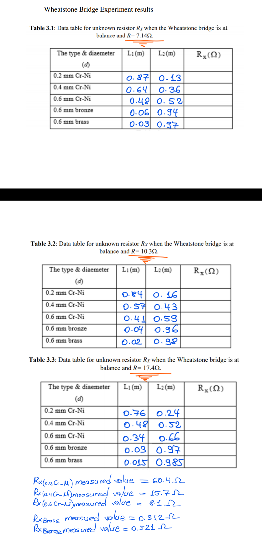 Solved Wheatstone Bridge Experiment Results Table 3 1 Data Chegg Com